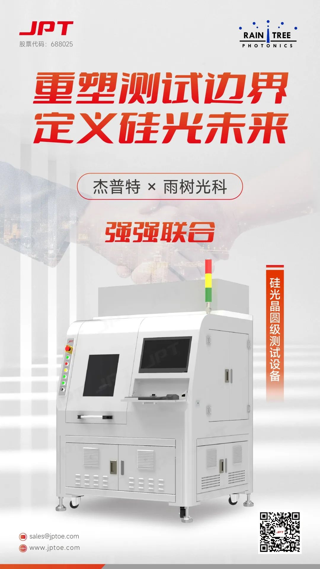 対外協力のさらなる強化:2025年6月、ジェプテットはシンガポールの雨樹光科と戦略的提携を深化させ、シリコンフォトニクス・ウェハレベルテスト技術の革新を共同で牽引する。2019年以降の成功した協業を基盤に、両社は次世代の高精度・高効率・高コストパフォーマンス・標準化されたテストソリューションを開発し、シリコンフォトニクス産業の発展を制約するテスト効率とコストの課題を解決することを目指す。新世代装置は、ゲートカップリング/エッジカップリングの互換性、高速自動アライメント、高精度位置決め、多サイズ/パッケージ対応、システムシームレス連携などの重要技術的ブレークスルーを実現し、大規模量産ニーズを支える。